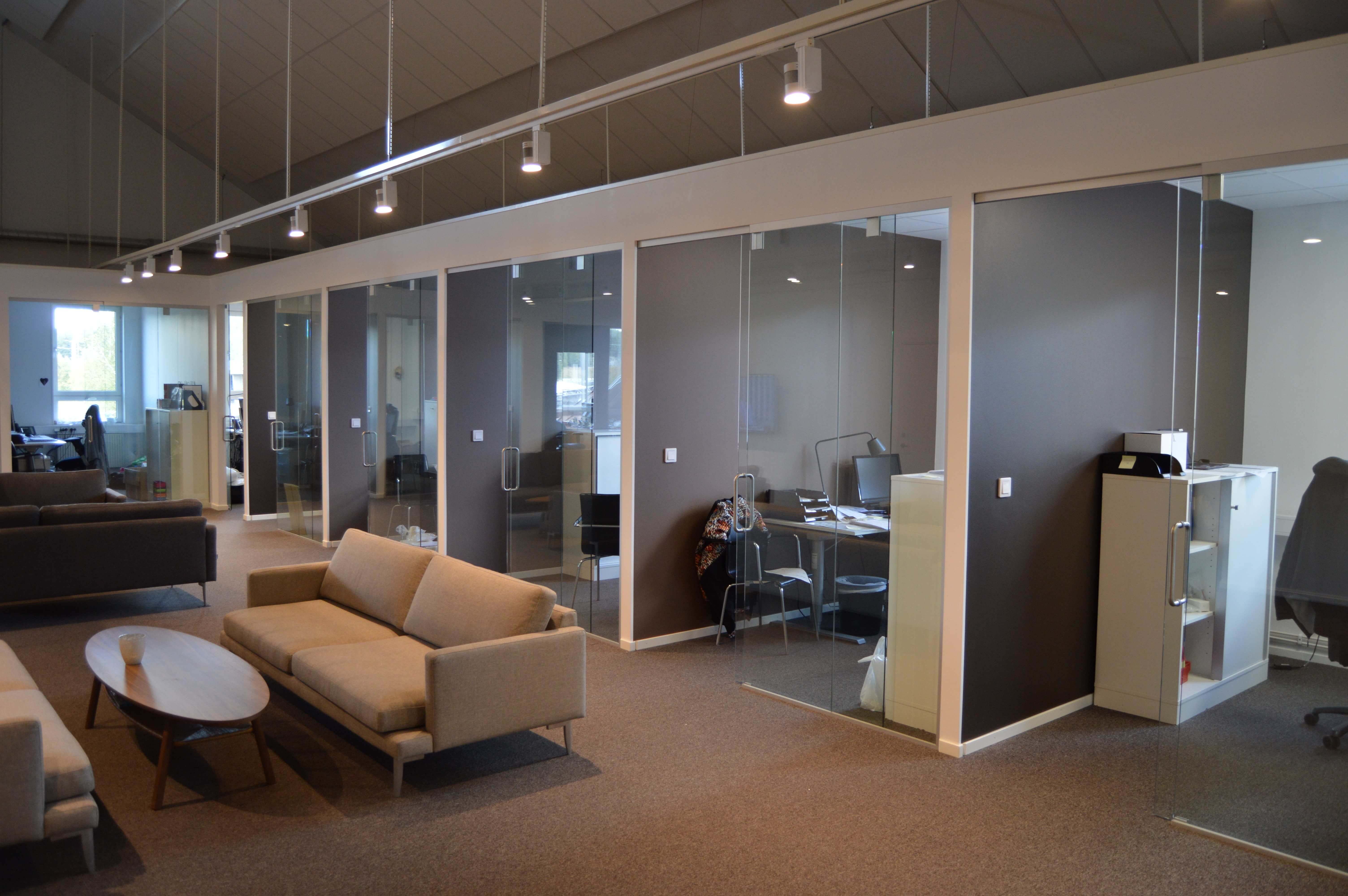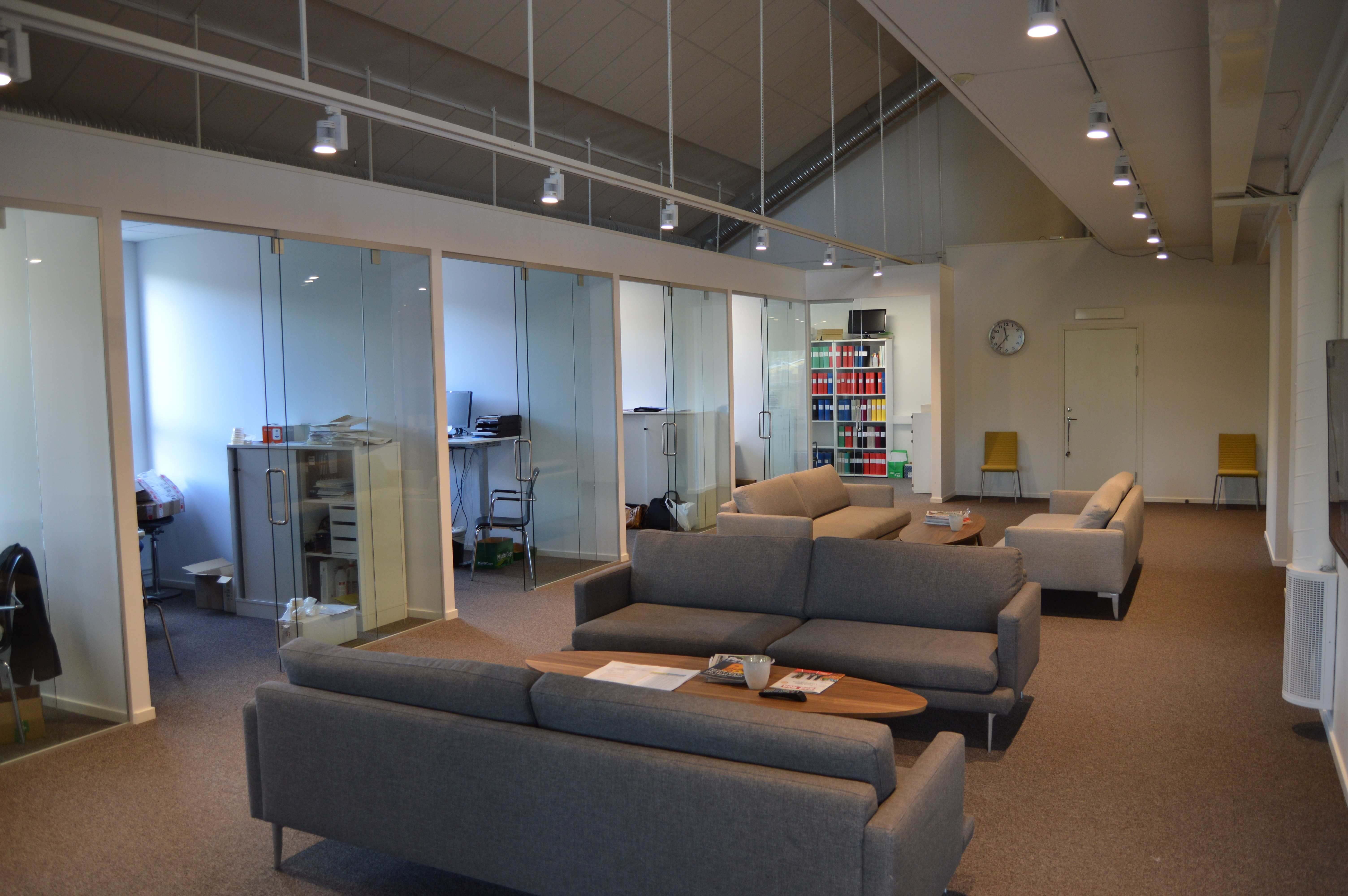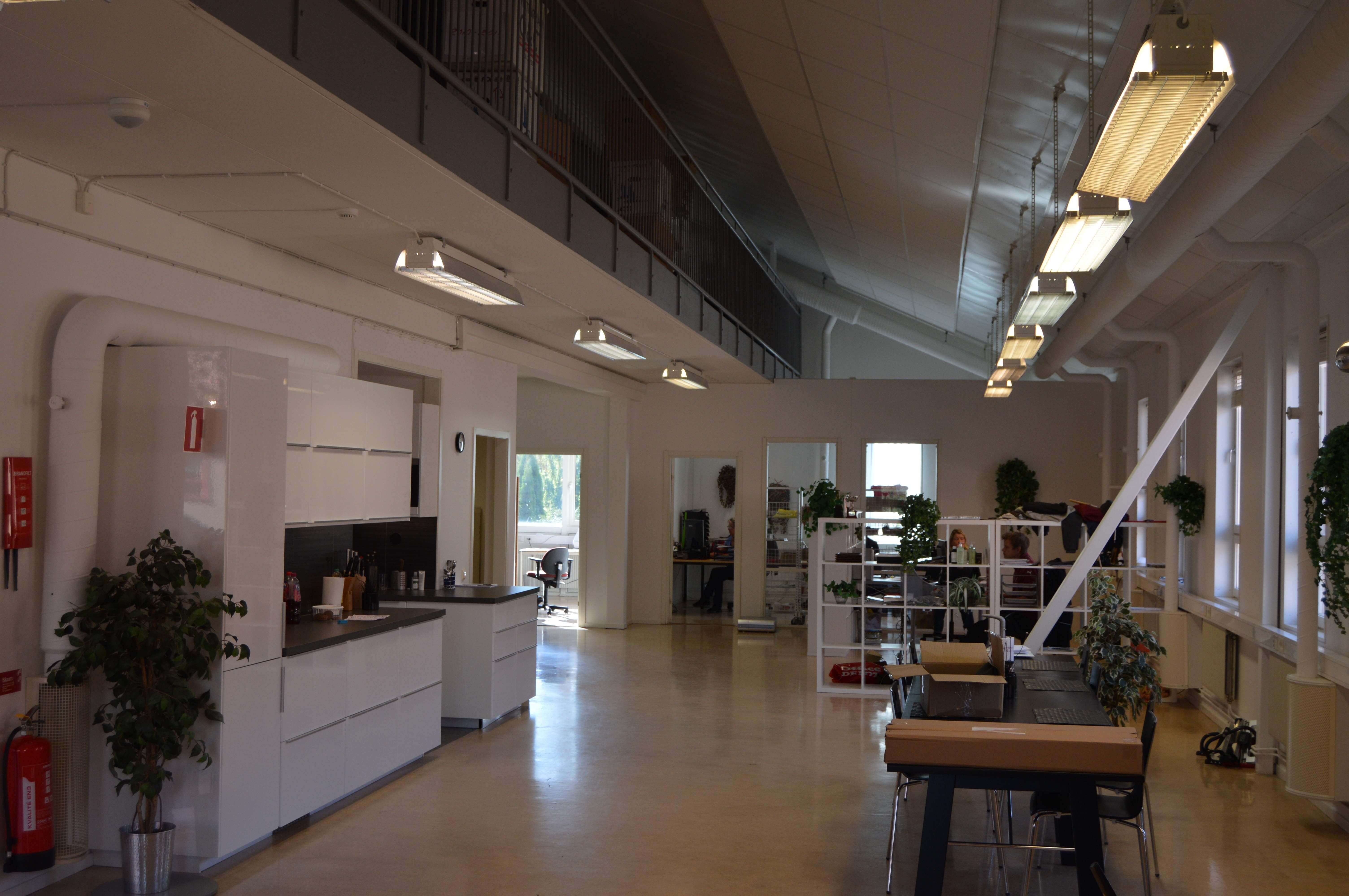 Planlösningen är idag uppdelad i landskap, mötesrum och kök. Planlösningen går lätt att anpassa beroende på verksamhetens krav.