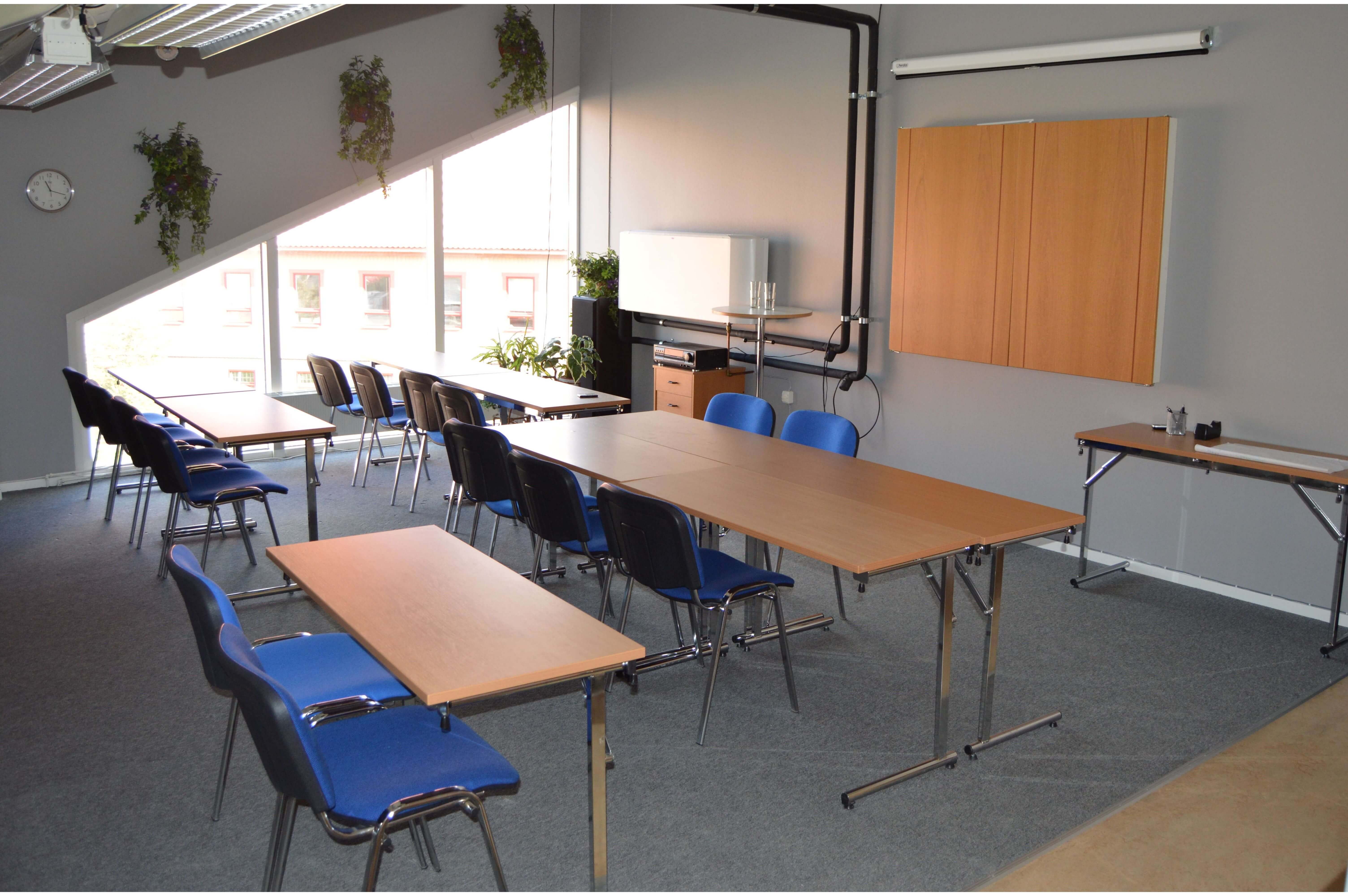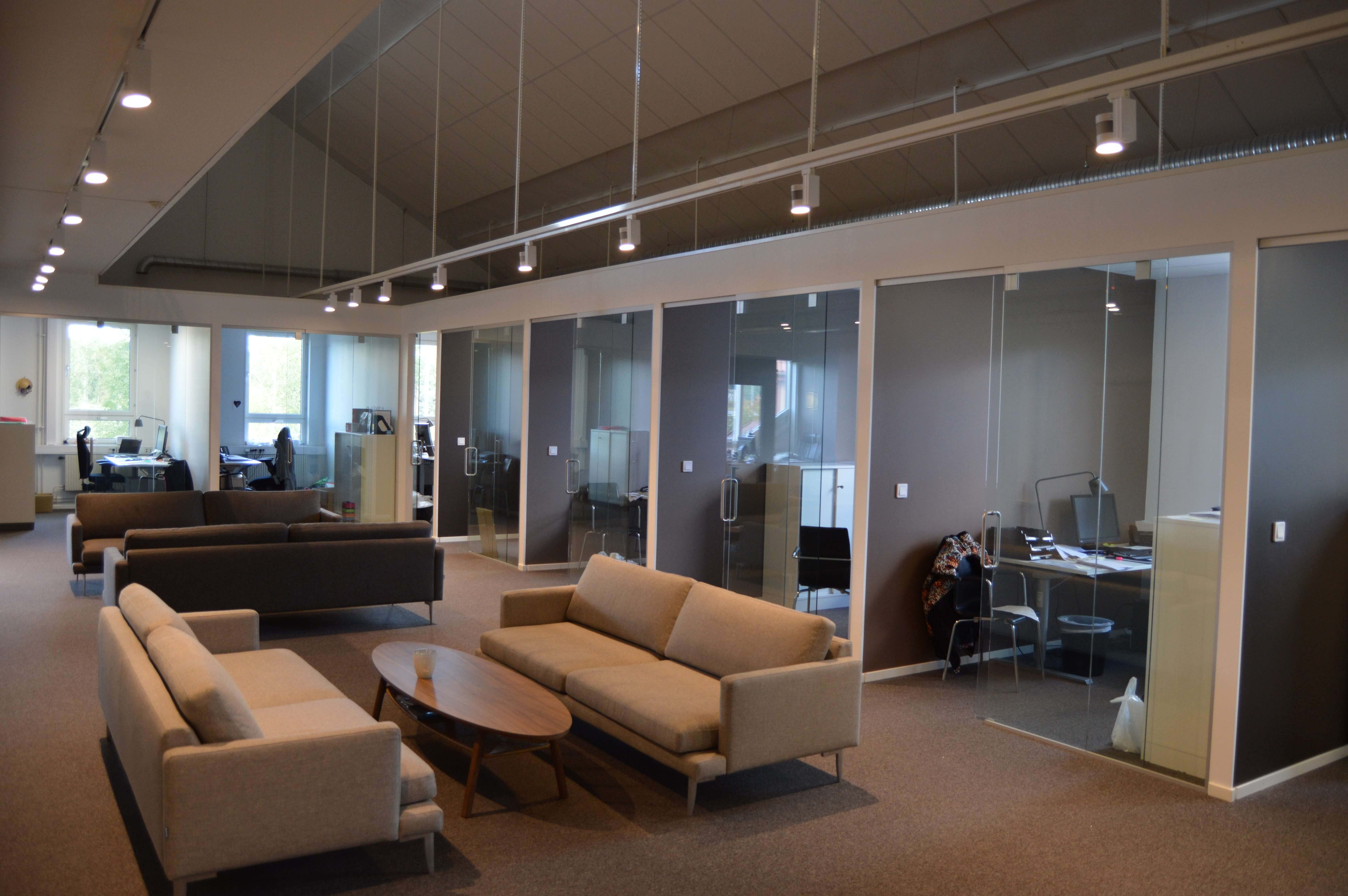 Planlösningen är idag uppdelad i landskap, mötesrum och kök. Planlösningen går lätt att anpassa beroende på verksamhetens krav.